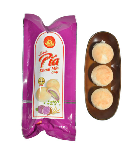 Bánh Pía chay là dòng sản phẩm lý tưởng dành cho những người ăn chay với phần nhân bánh đậm vị sầu riêng, bùi bùi của đậu xanh, sần sật của mứt bí. Lớp vỏ mềm mịn nhiều lớp tan ra trong miệng. Hương vị hài hòa dễ ăn, độ ngọt được cân đối để phù hợp hơn với thị hiếu của người tiêu dùng.