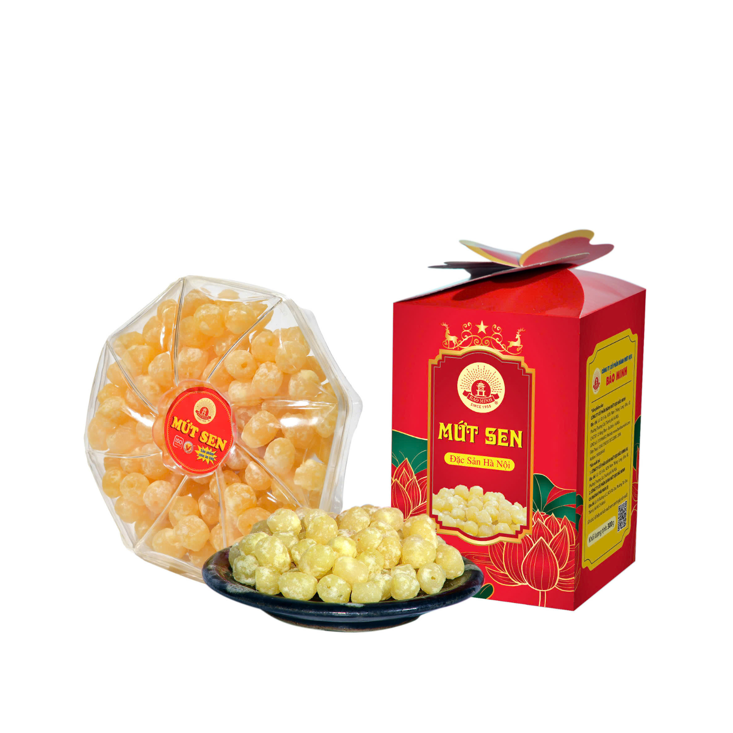 – Đây là sản phẩm truyền thống của Bảo Minh. Mứt Sen được chọn lọc từ những hạt sen tròn mẩy, qua sơ chế và dưới bàn tay khéo léo của người thợ làm bánh kẹo, đã cho ra những hạt Mứt Sen giòn sần sật, bùi, thơm, ngọt thanh, không ngán.